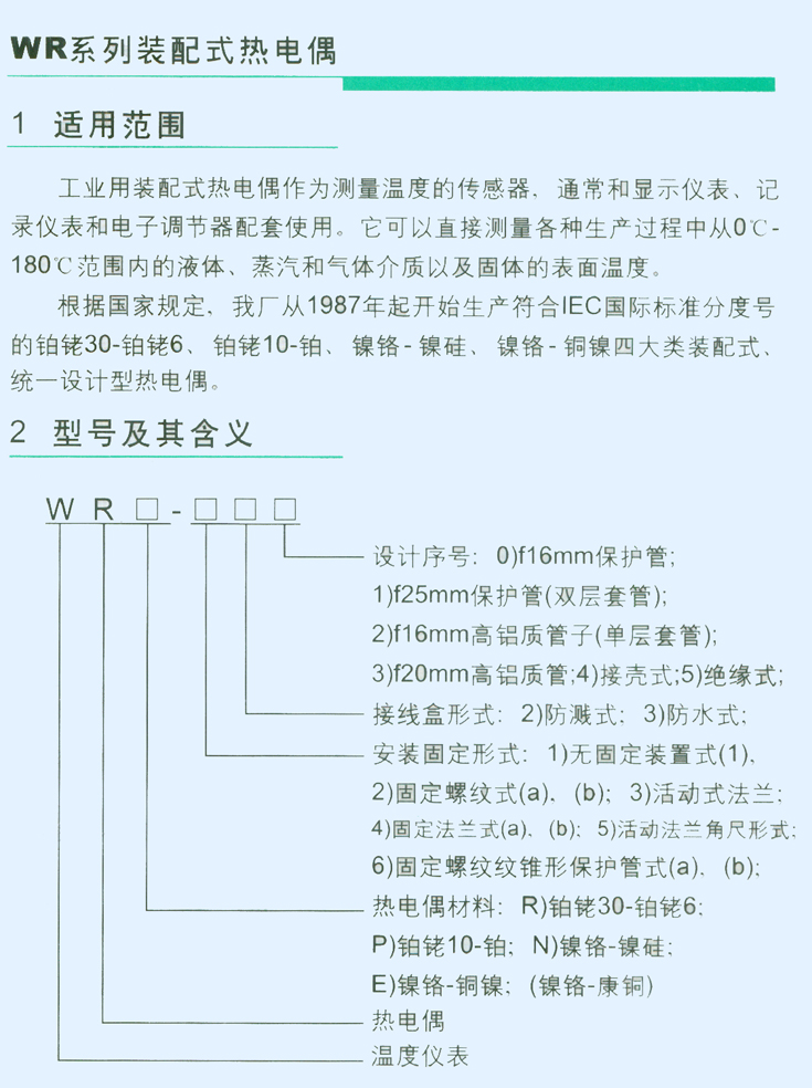 首頁 產(chǎn)品中心 儀器儀表產(chǎn)品系列 儀器儀表 WR系列裝配式熱電偶