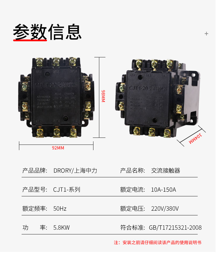 CJT1-□; 交流接觸器系列 電流10A~150A