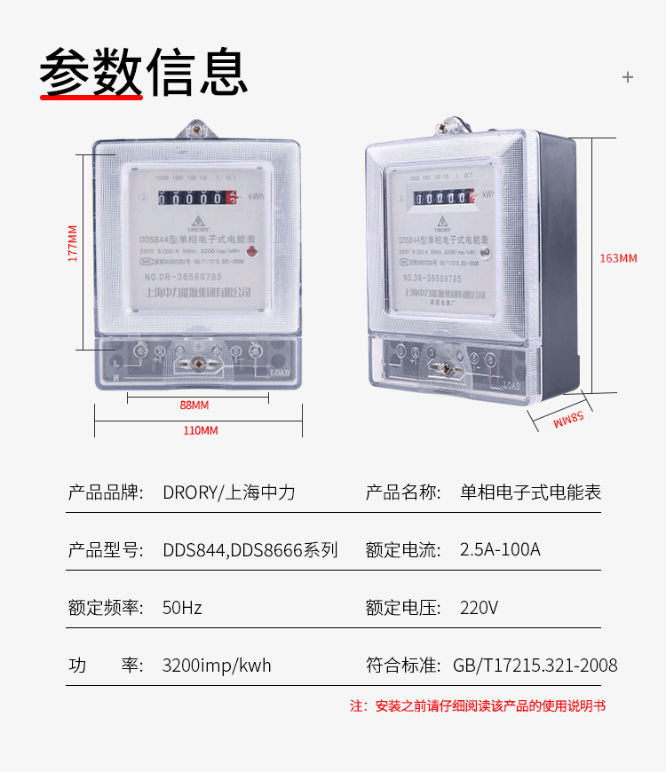 DDS844,DDS8666;電流:2.5A-100A 單相電能表系列