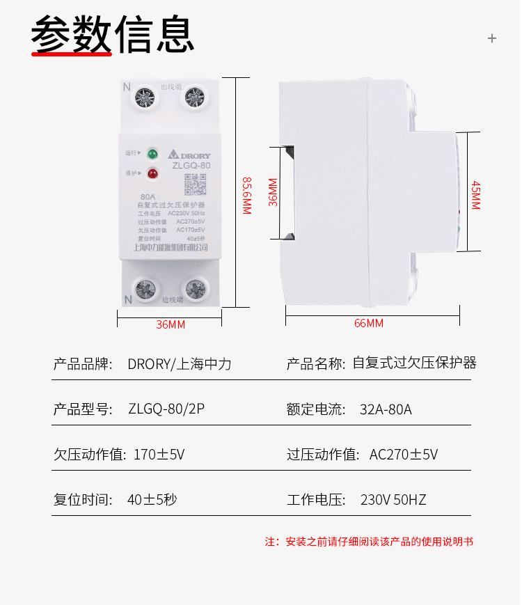 ZLGQ-80/2P 32A 40A 50A 63A 80A 自復式保護器