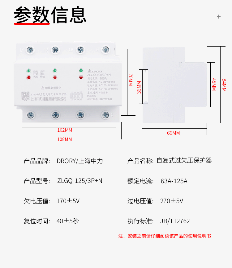 ZLGQ-125/2P,4P; 63型~125型系列自復式保護器