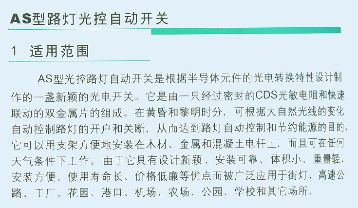 AS型路燈光控自動(dòng)開(kāi)關(guān)