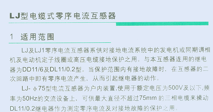 LJ型電纜式零序電流互感器