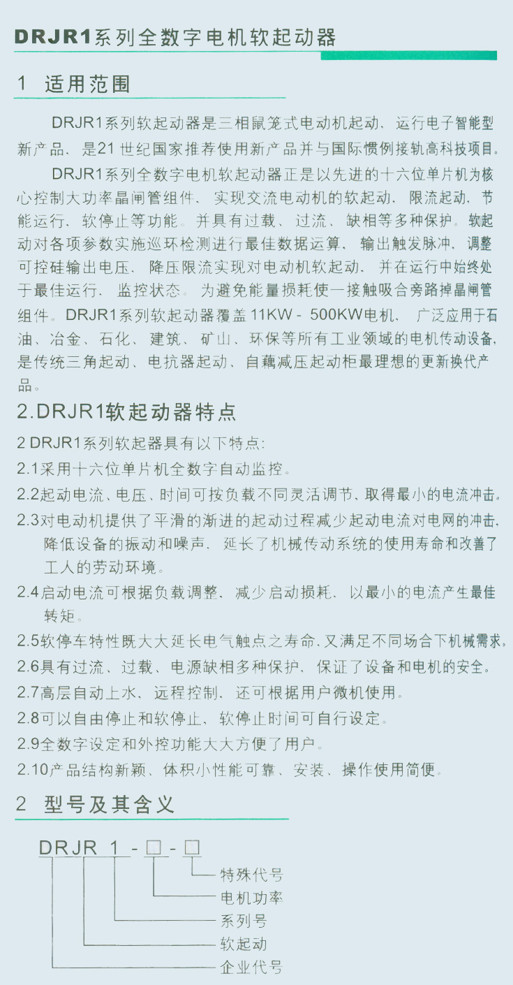 DRJR1系列全數(shù)字電機(jī)軟起動(dòng)器