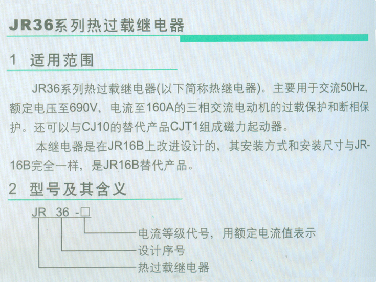 JR36系列熱過載繼電器