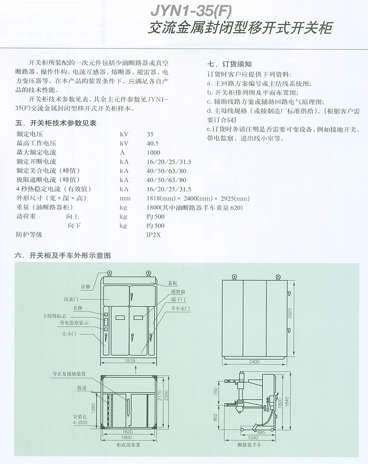 JYN1-35(F)交流金屬封閉型移開式開關柜