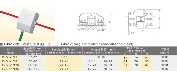 首頁 產品中心 接線端子產品系列 FJ6系列 FJ6-1-1主干線單分支線夾(一進一出)