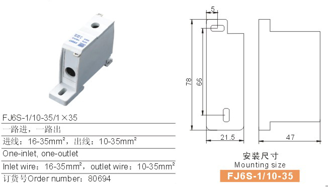 FJ6S-1/10-35/1×35多用途接線端子(一路進,一路出)