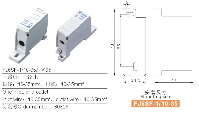 FJ6SF-1/10-35/1×35多用途封閉式防竊電接線端子(一路進(jìn),一路出)