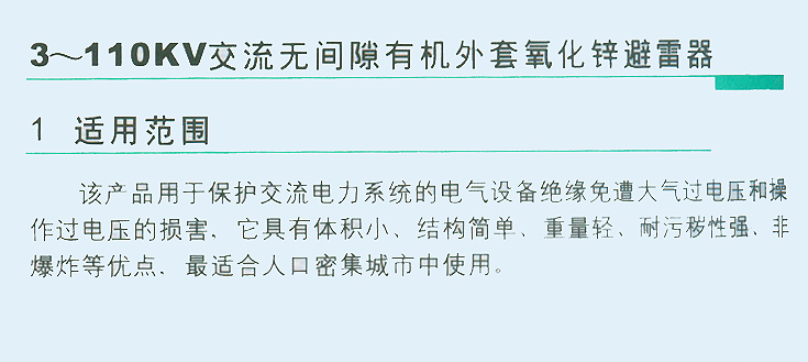 3~100KV交流無間隙有機外套氧化鋅避雷器