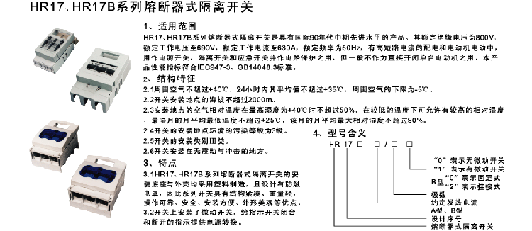首頁 產品中心 低壓電器產品總匯系列 刀開關-負荷-隔離開關系列 HR17、HR17B系列熔斷器式隔離開關