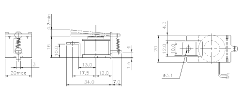 外型 : 20x16x41mm重量 : 35g耐壓度 : 1000VAC 1分鐘操作溫度 : 65度時小于2W
