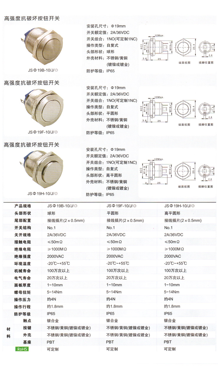 JSΦ19高強度抗破壞按鈕開關(guān)