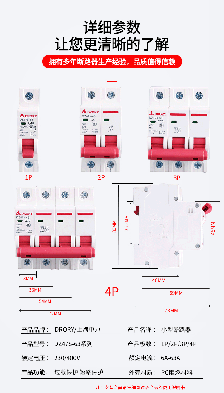DZ47-63; TGC1s-63; 1P~4P 6A~63A小型斷路器系列
