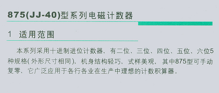 首頁 產(chǎn)品中心 儀器儀表產(chǎn)品系列 儀器儀表 875(JJ-40)型系列電磁計數(shù)器