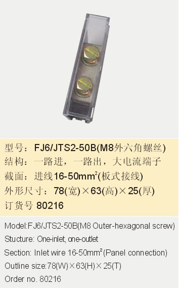 首頁(yè) 產(chǎn)品中心 接線端子產(chǎn)品系列 FJ6/JTS2 FJ6/JTS2-50B(M8外六角螺絲)