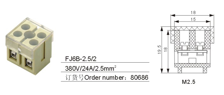 首頁 產品中心 接線端子產品系列 FJ6系列 FJ6B-2.5/2底座封閉型接線端子排