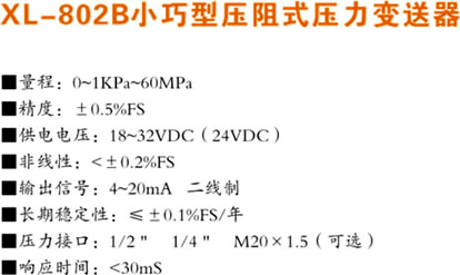 首頁(yè) 產(chǎn)品中心 儀器儀表產(chǎn)品系列 XL-808B小巧壓阻式壓力變送器