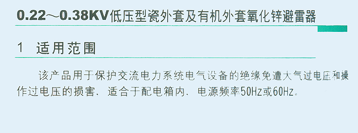 0.22~0.38KV低壓型瓷外套幾有機(jī)外套氧化鋅避雷器