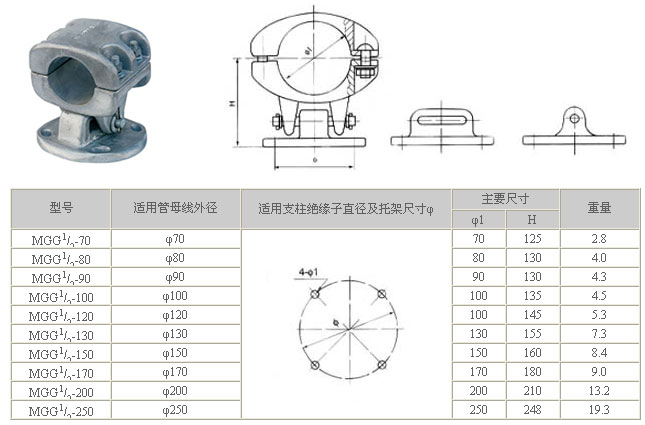 MGG1-2型活動式管母線固定金具