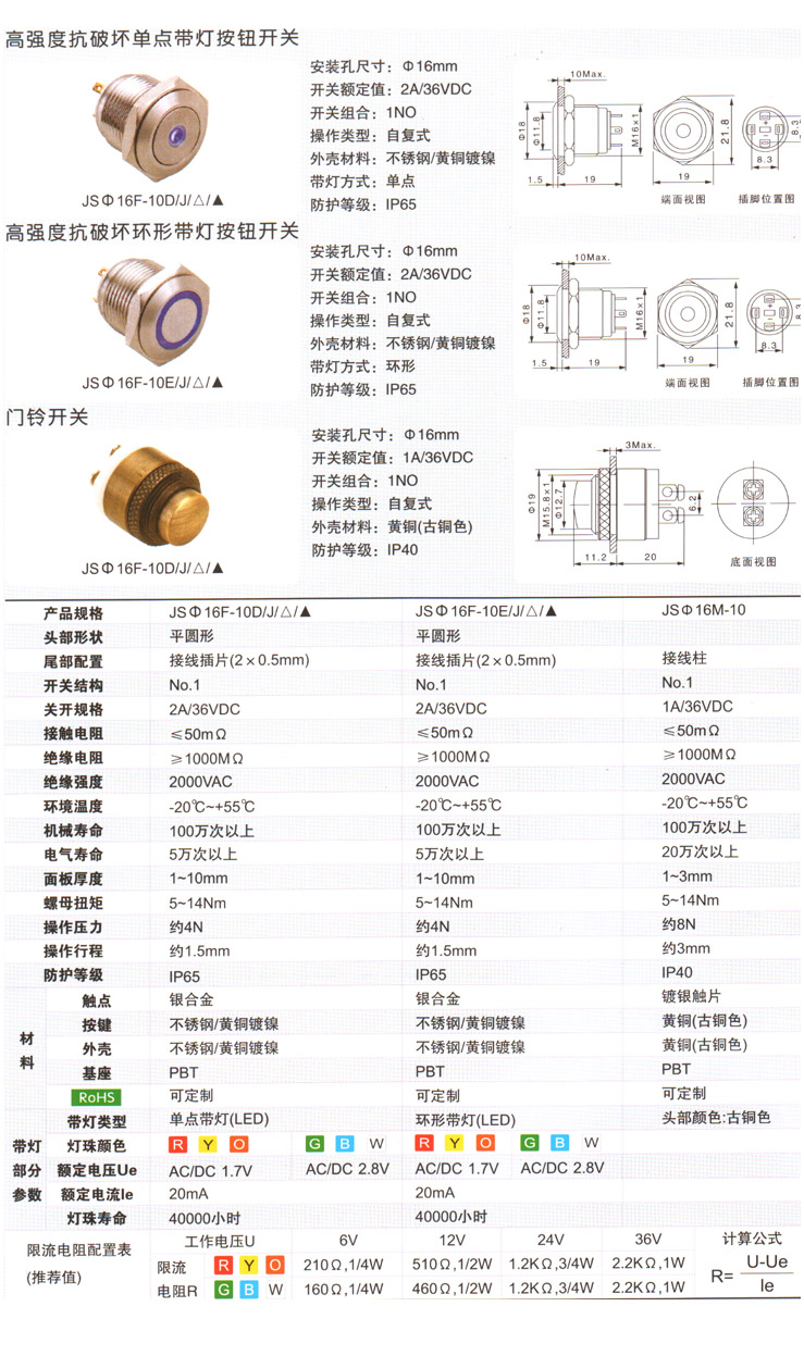 JSΦ16帶燈按鈕開關-門鈴開關