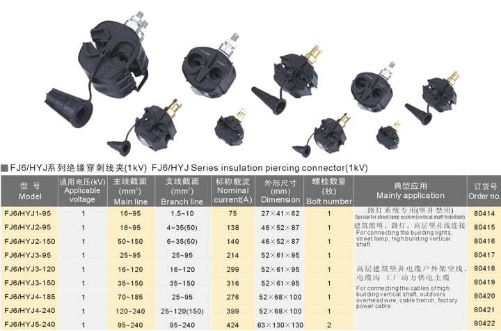 FJ6/HYJ系列絕緣穿刺線夾(1kV)
